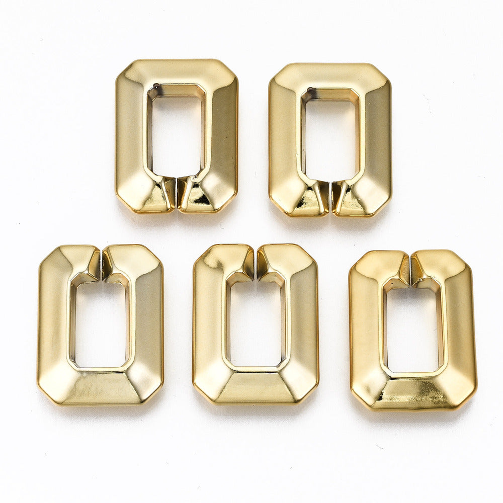 Anillos de enlace de plástico ccb, conectores de enlace rápido, para la fabricación de cadenas cruzadas de joyería, Rectángulo, dorado, 28x21x6.5mm, diámetro interior: 15x8 mm (C
