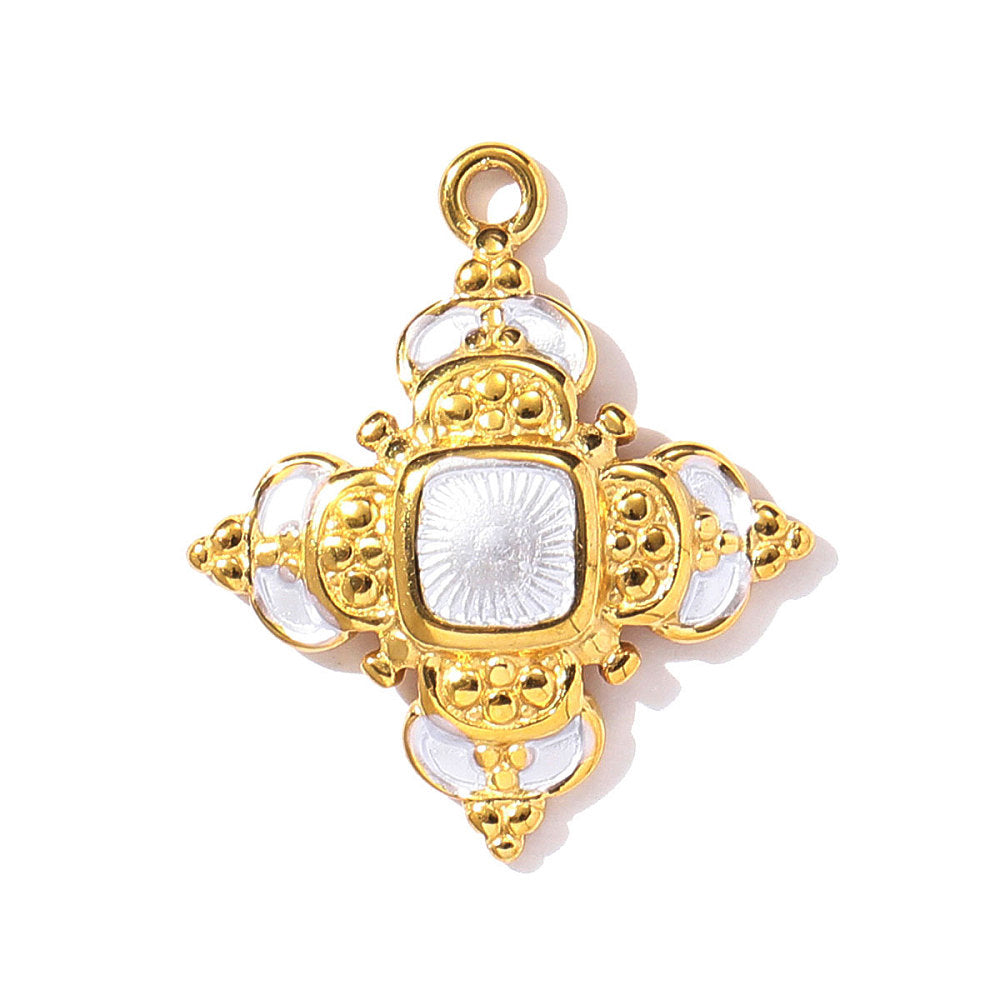 Acero inoxidable 304, charms de la flor, revestimiento de iones (ip), real 18k chapado en oro, blanco, 22x19mm